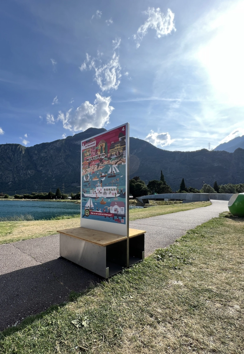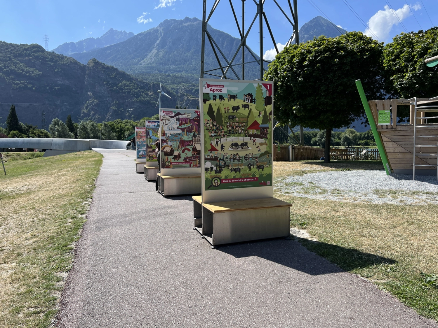 Das Wallis spielerisch an einer Autobahnraststätte entdecken. Das ist das Ziel dieses umfangreichen Projektes beim Relais du St-Bernard. Zu diesem Zweck haben wir die beliebten Wimmelbuchseiten der Walla Bücher neu gestaltet und in Form von Plakaten auf einem Rundweg bei der Raststätte platziert. Die Familien können so von einem Halt inklusiver aktiver Erholung und Wimmelbuchspass profitieren - wer findet den Bernardinerhund als Erstes auf den Bildern?